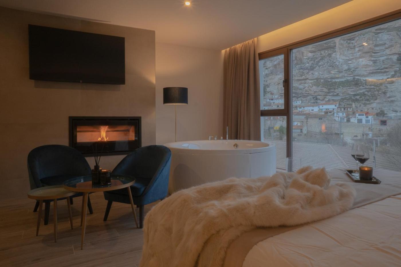 Almazara Suites ofrece alojamiento con piscina de temporada al aire libre, wifi gratis y parking privado gratis en Alcalá del Júcar. El alojamiento tiene bañera de hidromasaje y bañera de hidromasaje.