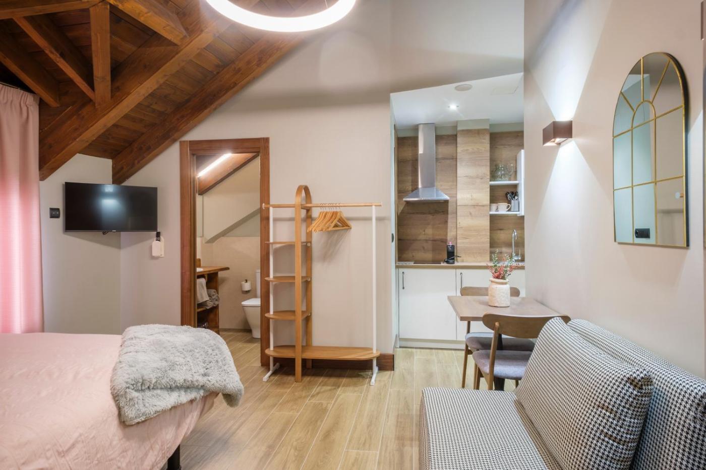 Estudio - Adaptado para personas con movilidad reducida. In the fully equipped kitchen, guests will find a stovetop, a refrigerator, a dishwasher and kitchenware. The studio features air conditioning, a private entrance, as well as a private bathroom boasting a walk-in shower and a hairdryer. The unit has 3 beds.