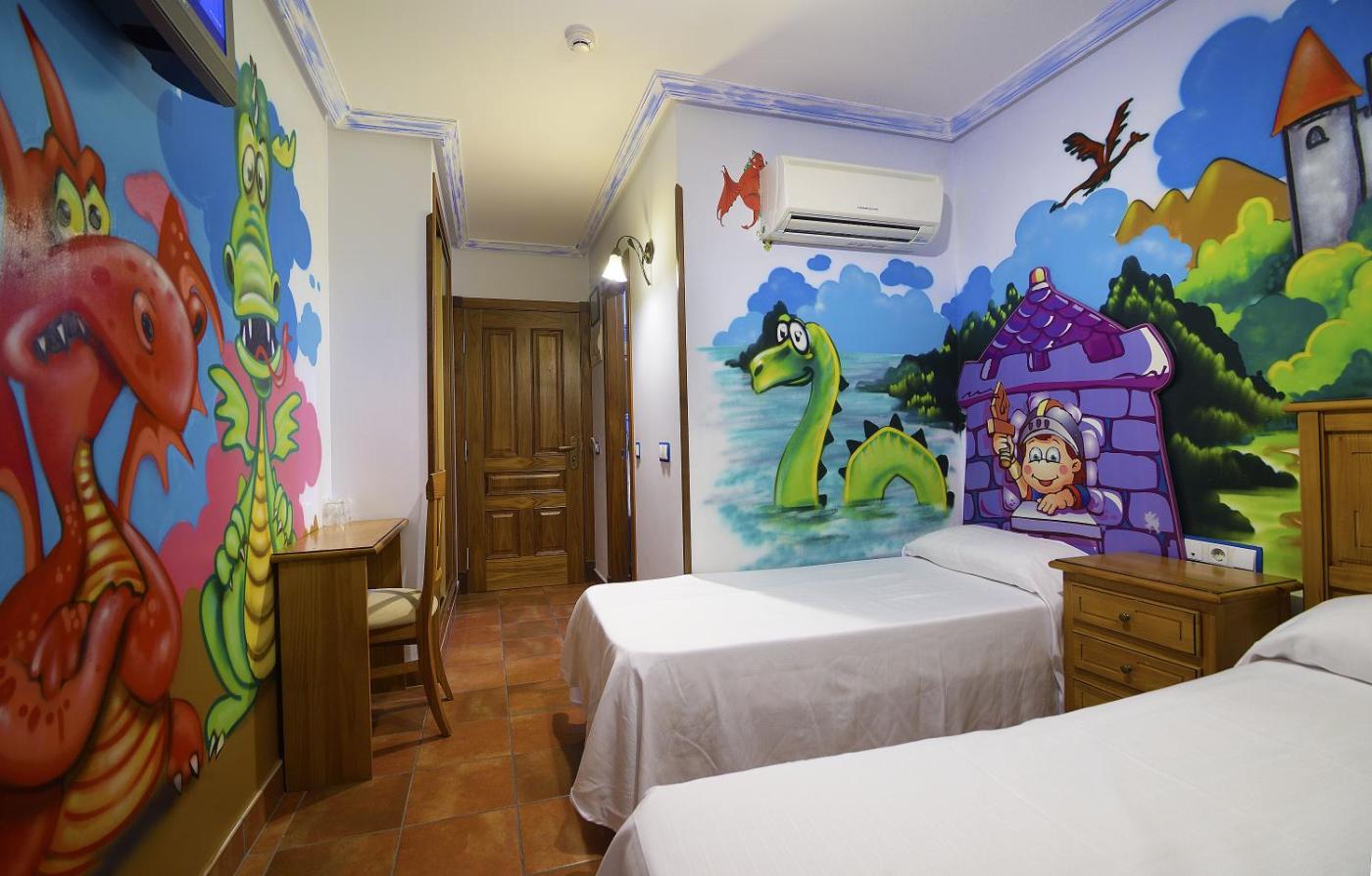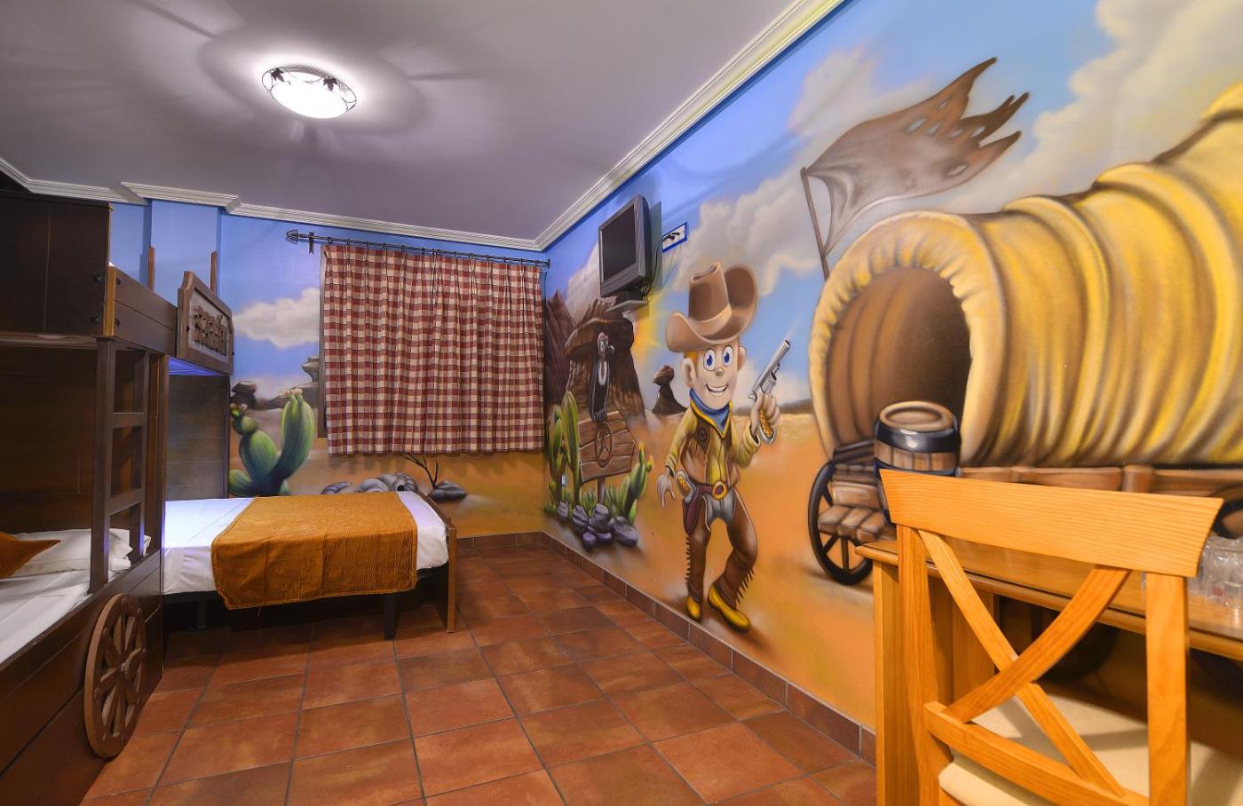 Habitación temática - 1 cama doble y 2 camas individuales. Esta habitación familiar cuenta con aire acondicionado y una decoración inspirada en dibujos animados. ;